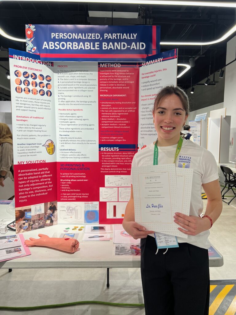 A magyar csapat lány tagja Hajsz Natali Júlia, a Deutsche Schule Budapest – Thomas Mann Gimnázium diákja egy olyan 3D technológiával nyomtatott, személyre szabható, részben felszívódó sebtapaszt fejlesztett ki, amely hatékonyabb gyógyulást eredményez és egyben kevesebb hulladékot is eredményez. A csapat fiú tagja Czapák Dániel, a Medgyessy Ferenc Gimnázium és Művészeti Szakgimnázium tanulója, aki egy rugalmas érzékelőkre épülő, az ipari gépek meghibásodását előre jelezni képes vezeték nélküli rendszer alkotott meg.